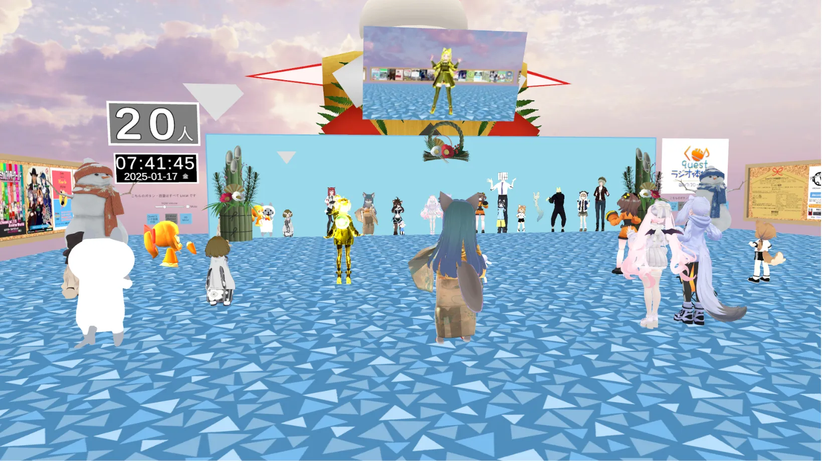 ワールドの前方には実際にアバターがラジオ体操を行う映像が流れており、音声に合わせてそれをマネするだけで気軽に参加することができました。