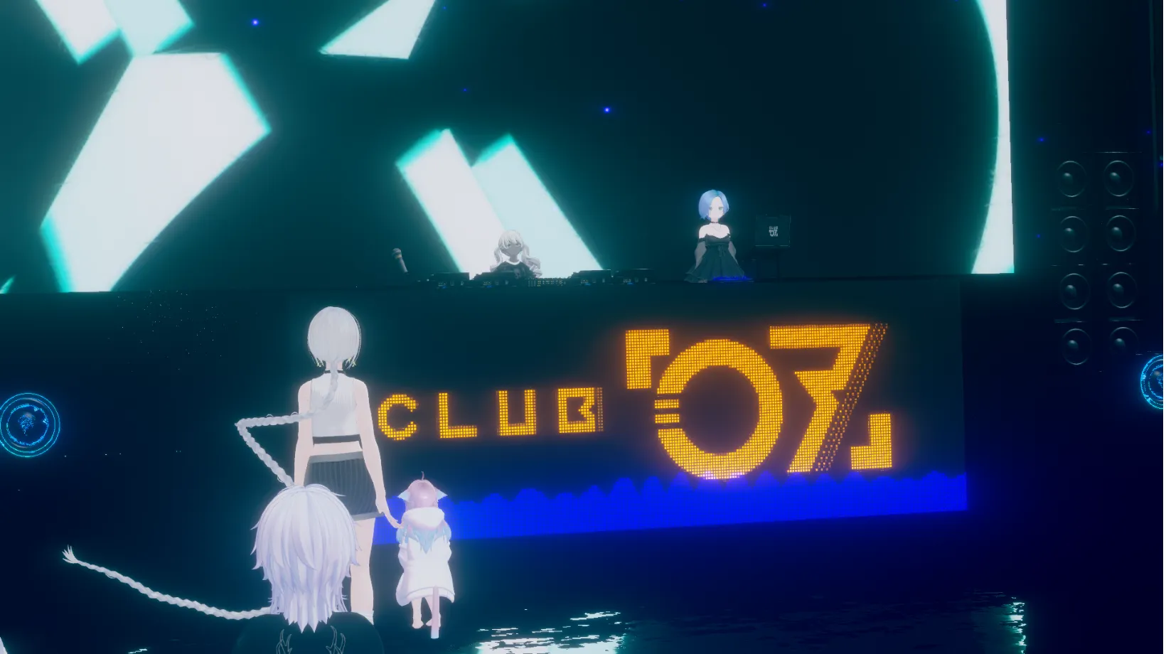 クラブイベントでは、ワールドに大きなスクリーンが表示されており、VJのパフォーマンスを見られることもあります。