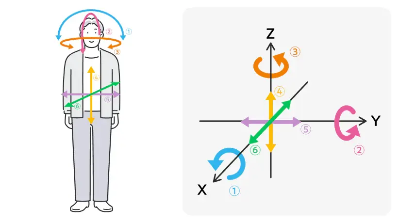 「3DoF(スリードフ)」とは、つまり「3つの方向性の自由度」を指します。